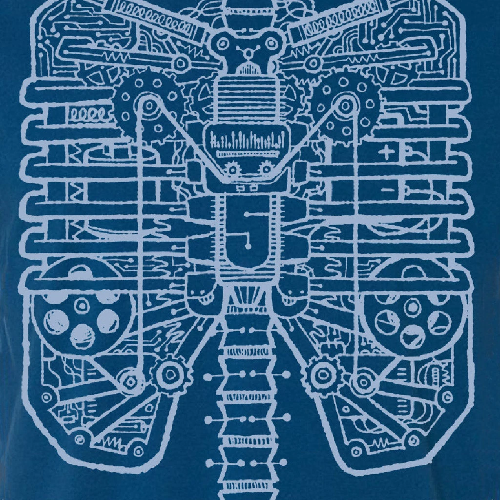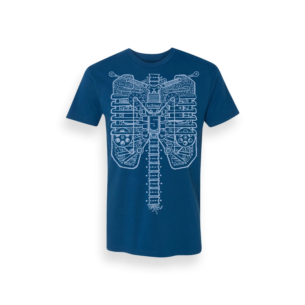 Designed by Chris Bilheimer. Screenprinted on a Next Level Cool Blue 100% cotton tee in Unisex sizes (XS-4XL) by Impact Merchandising.