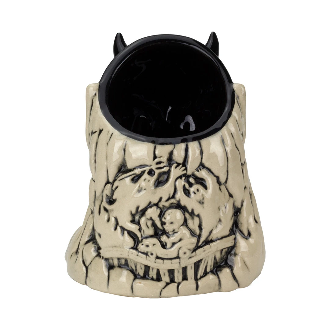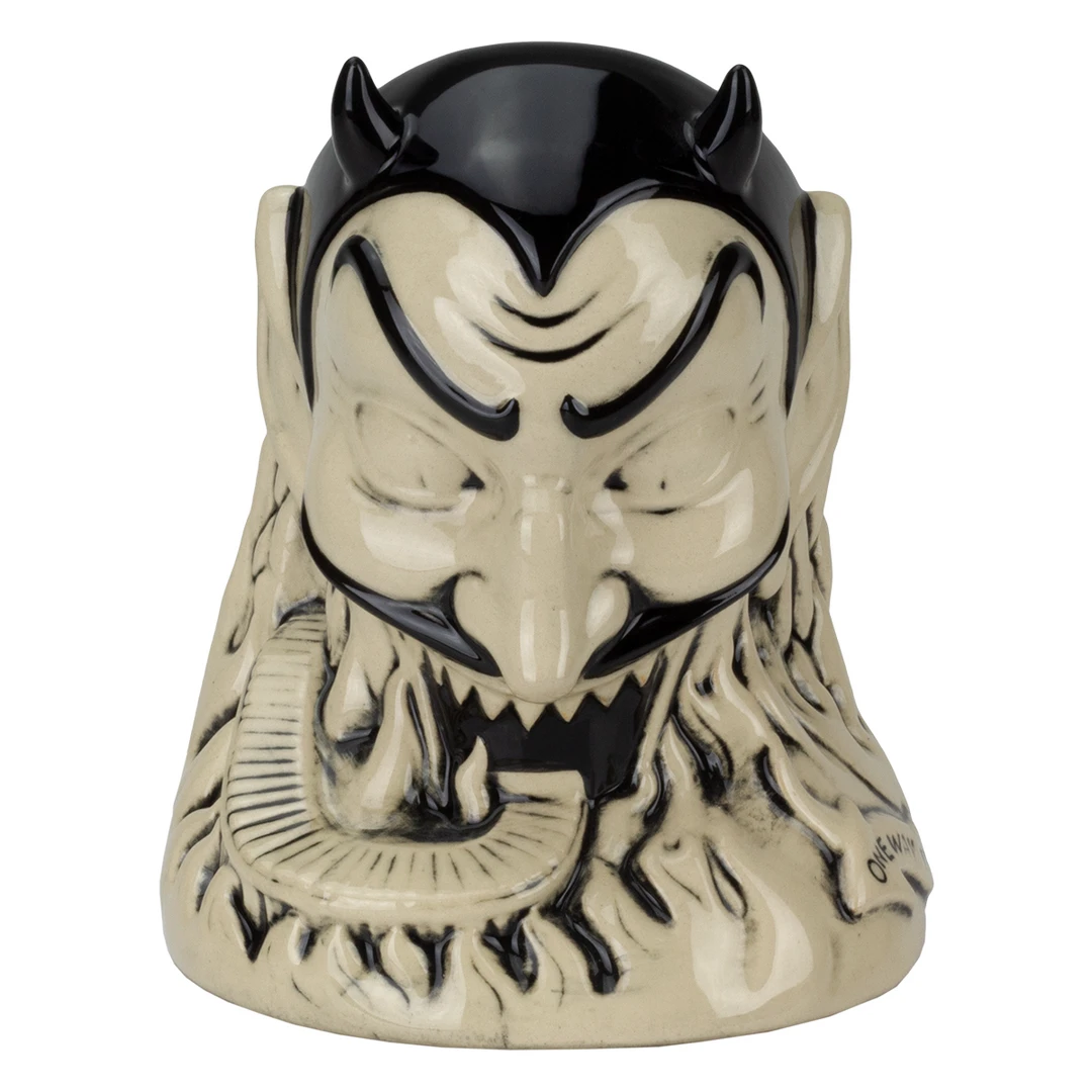 From artist Doug P’Gosh and sculptor Tufan Sezer, Ol’ Scratch comes knocking down your door to take you to Tiki Hell. Fit for a carnival, this punch bowl-sized terror stands at approx. 7.25” tall and holds 32 oz.