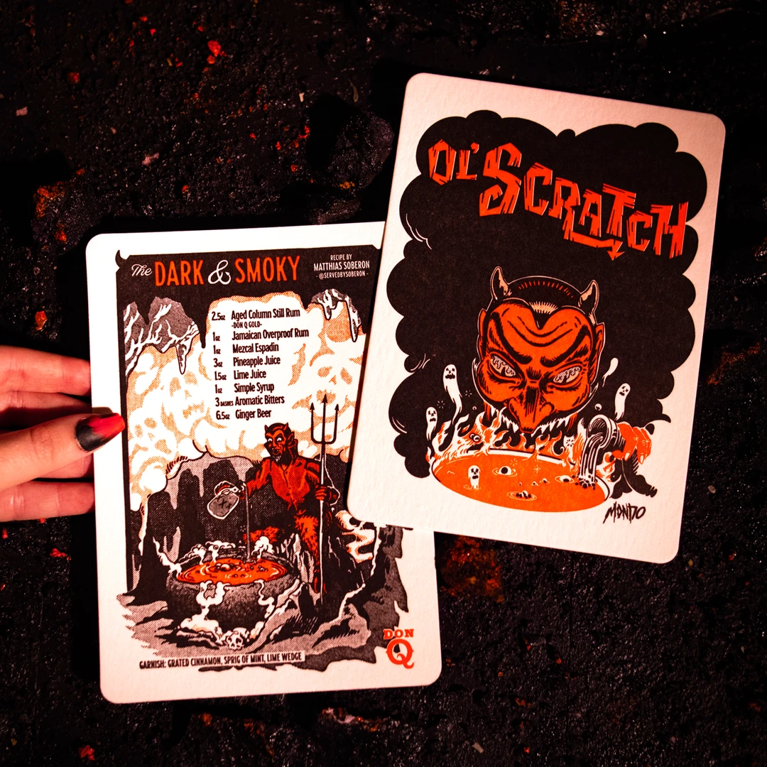 Each package includes a cocktail recipe card for a devilishly good time