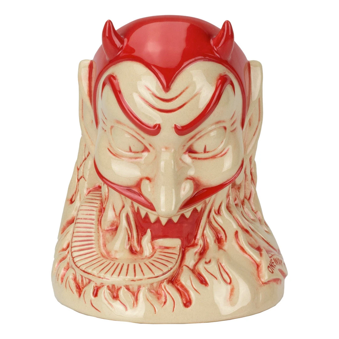From artist Doug P’Gosh and sculptor Tufan Sezer, Ol’ Scratch comes knocking down your door to take you to Tiki Hell. Fit for a carnival, this punch bowl-sized terror stands at approx. 7.25” tall and holds 32 oz.