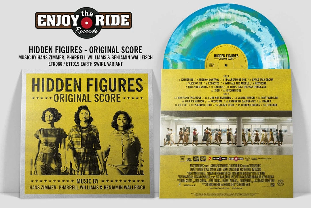 Enjoy The Ride Records and Enjoy The Toons Records are happy to announce Hidden Figures Original Motion Picture Score. This Golden Globe Nominee (Best Original Score) was created by Hans Zimmer (The Lion King, True Romance, The Dark Knight Trilogy), Pharrell Williams (N*E*R*D, The Neptunes, Despicable Me  films), and Benjamin Wallfisch (It, Blade Runner 2049, Hellboy, Shazam!) for the 2016 biographical drama about three black female mathematicians who were working for NASA during the Space Race.