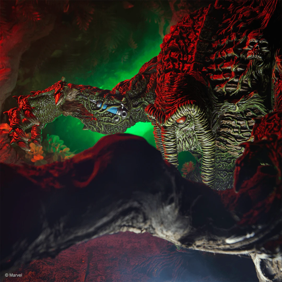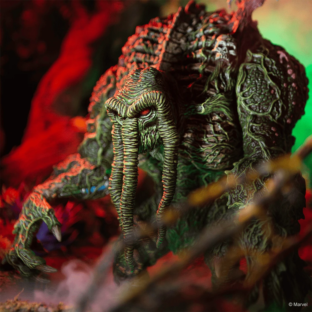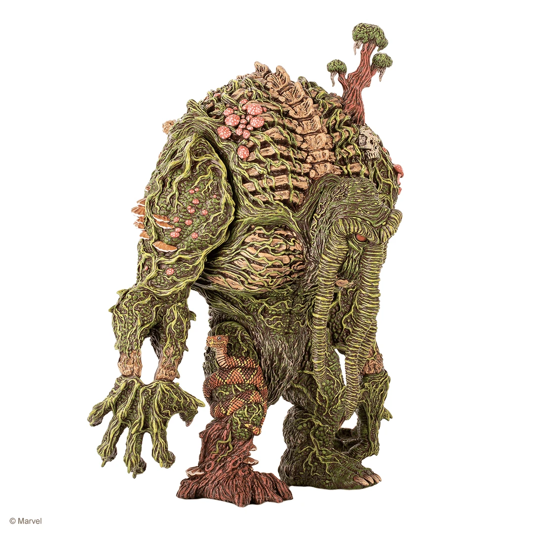 Emerging from the swamp, it’s Marvel’s Man-Thing! This exciting collaboration with famed toy Designer James Groman (Madballs, Kaiju Killer, King Korpse) brings his unique style to full display with this limited edition Man-Thing Soft Vinyl Figure. With 3 Points of articulation, this massive 12 inch tall figure is a sight to behold. James poured so much thought into this sculpture that you can get lost in the details for hours.