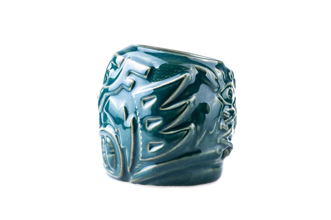 Enter the ring and grab your drink with the hero with the fantastic eye- El Ojo Fantastico! A lucre-inspired mug designed by Michael Bonanno, sculpted by Tufan Sezer, and produced with our tag-team mates Tiki Farm, this mug holds approx. 16oz, and is made in Mexico! ¡Muy autentico! The regular version features a teal green glaze!