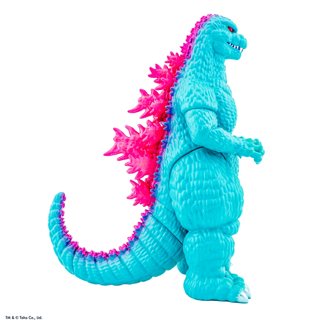 Based on his appearance from the Heisei Era’s opening salvo, our Godzilla 84 Soft Vinyl blasts onto the scene in shocking teal, with pink luminescent back spikes.