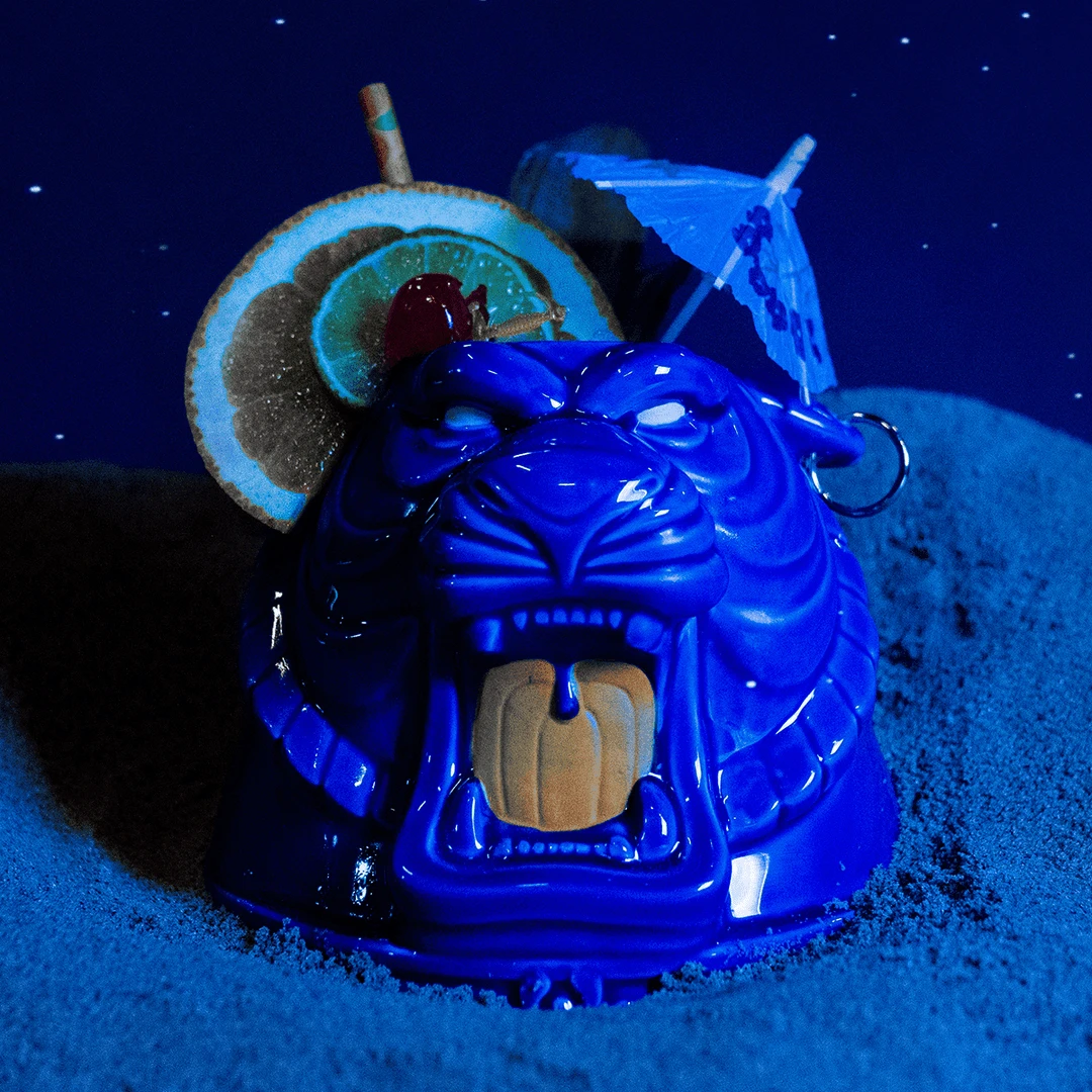 Hidden amid the shimmering sands of the Sahara, where heroes are born to combat sinister sorcerers, lies the Cave of Wonders. Here, in the mystical keeping place of the magic lamp, ancient secrets are revealed, power is unleashed… and drinks are drank! This beautiful stoneware ceramic tiki is designed by Tim Wolwebber and sculpted/manufactured by our friends at Tiki Farm, guaranteed to conjure some cocktails that send you into a whole new world… (see what we did there?