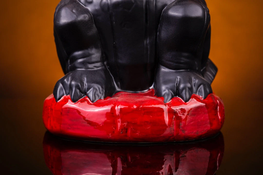 The Mondo Exclusive Logo variant features a black matte glaze, with red base, yellow interior, and is limited to 165 pieces.