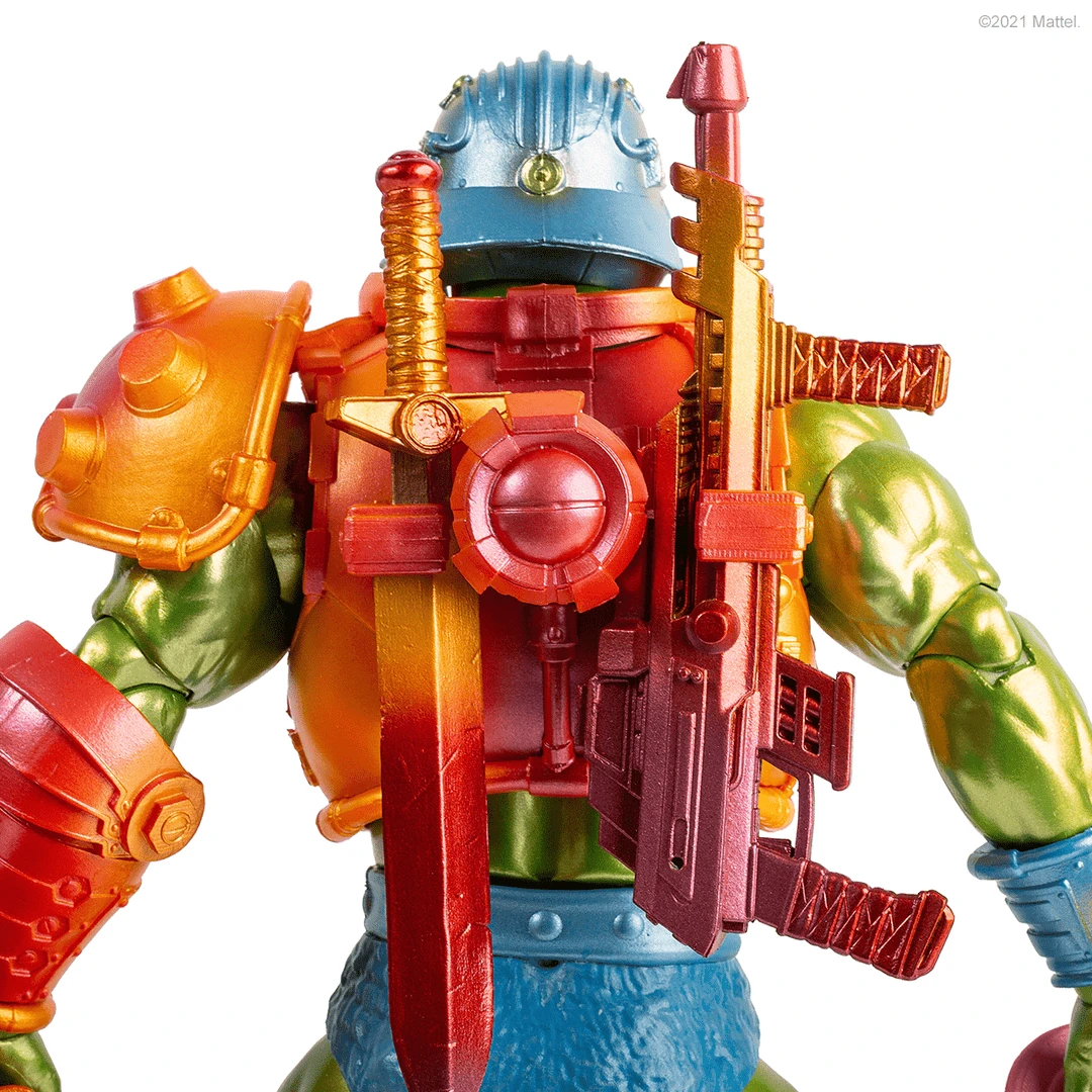 Featuring over 30 points of articulation, fabric costume elements, and a lot of accessories (and we mean a lot!), our “MOTUbi” Variant deliversΒ the most powerfully man at arms figure you will ever find, from here to the government of Eternia!