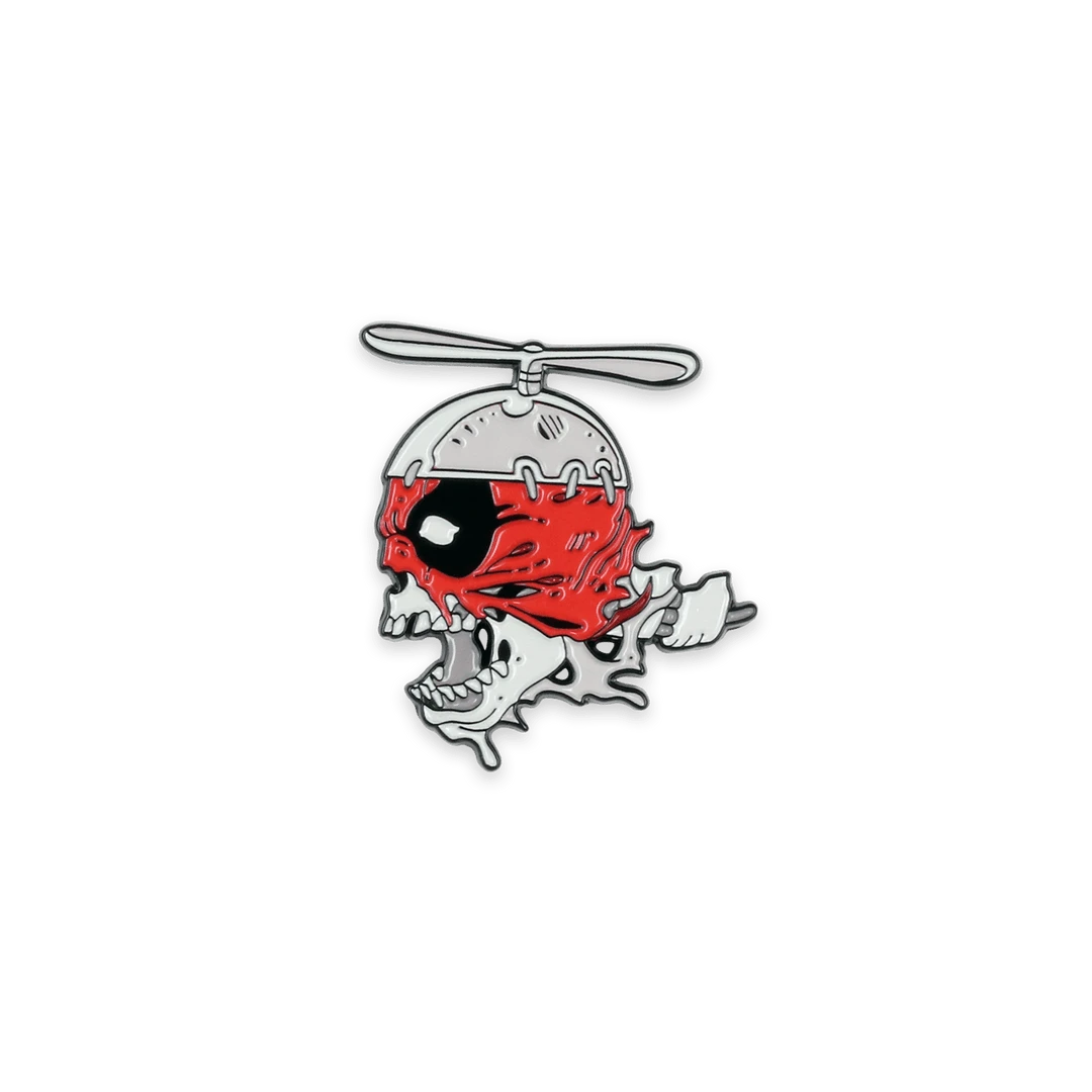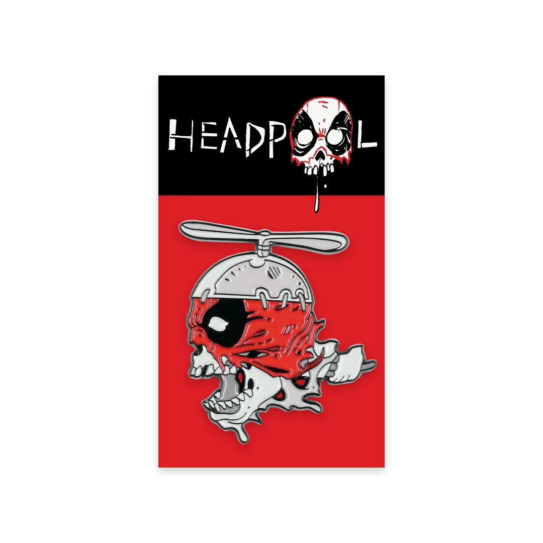 Coming straight to your jacket lapel from Earth-2149 is HEADPOOL, a demure but mightily disembodied 1.53″ high soft enamel pin designed by Sam Turner. Single post on black dyed metal with black rubber clutch backing on a 1.5″ x 2.625″ backing card.