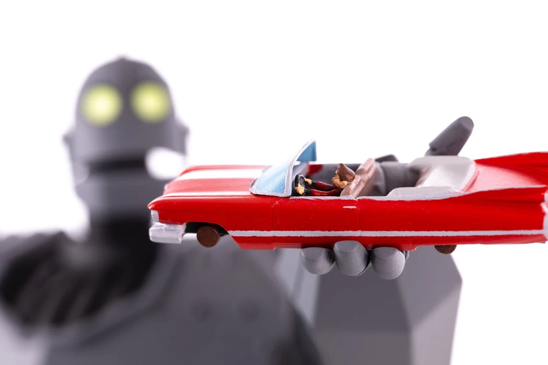 Mondo Exclusive: This version includes Hogarth in Junked Car accessory, and the interchangeable Sad Iron Giant head!