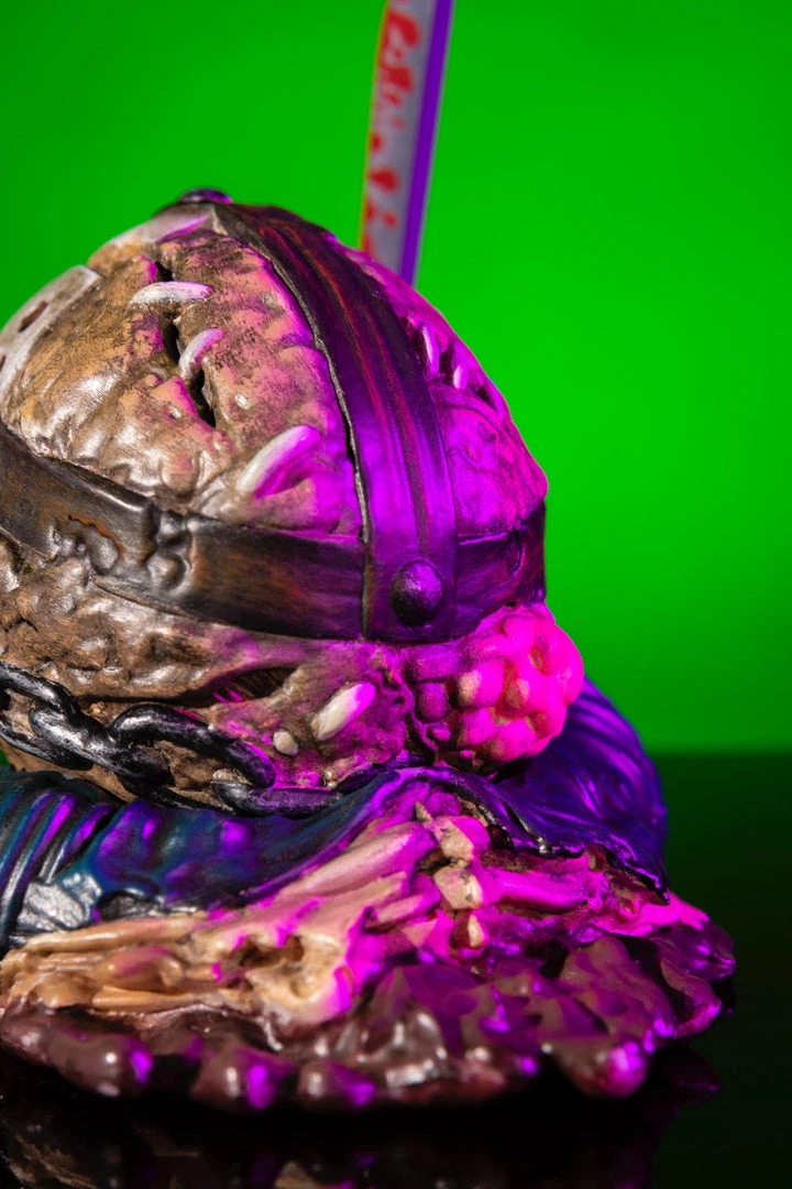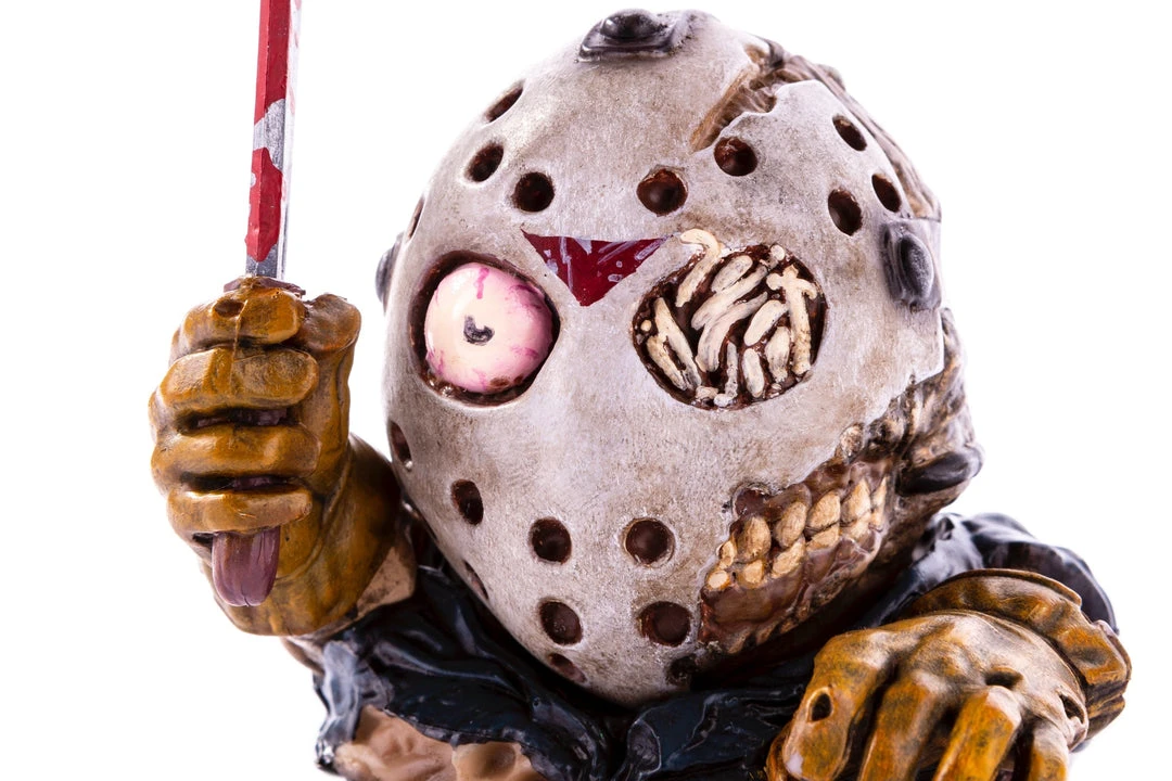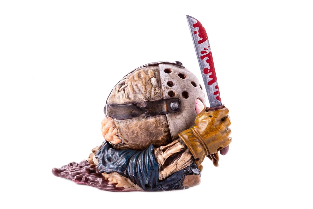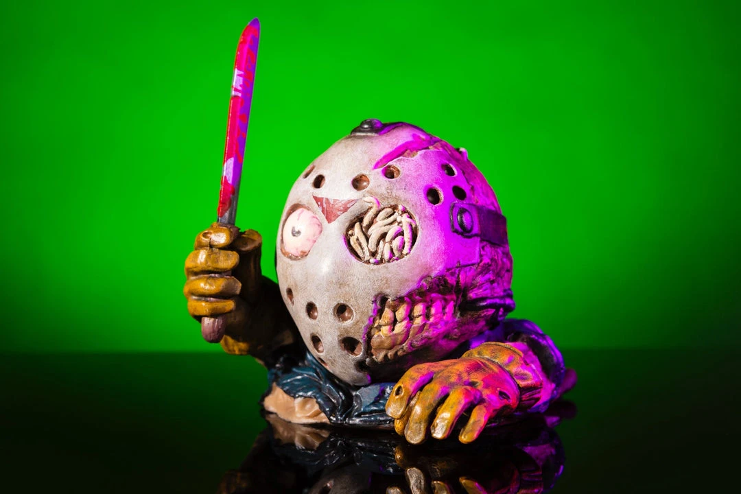 This one takes the form of JASON VOORHEES, from the FRIDAY the 13th film series! Featuring a bloody machete and dirty, grimy, maggoty details, this is one Mondoid who doesn’t mind being called a HACK!