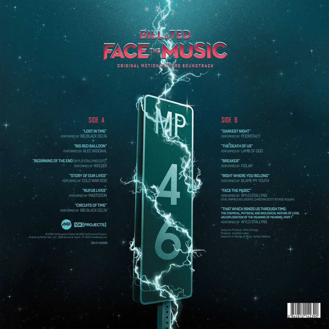 Mondo and 10K Projects are proud to present a limited edition vinyl pressing to the 2020 long awaited trilogy capper, BILL AND TED FACE THE MUSIC. Featuring original songs by WEEZER, COLD WAR KIDS, MASTODON, LAMB OF GOD and more! Pressed on Color vinyl, this Mondo exclusive features all new original artwork by illustrator Matt Ryan Tobin, its the perfect companion piece to their previous OST re-issue of the original BILL AND TED’S EXCELLENT ADVENTURE. Be Excellent To Each Other!